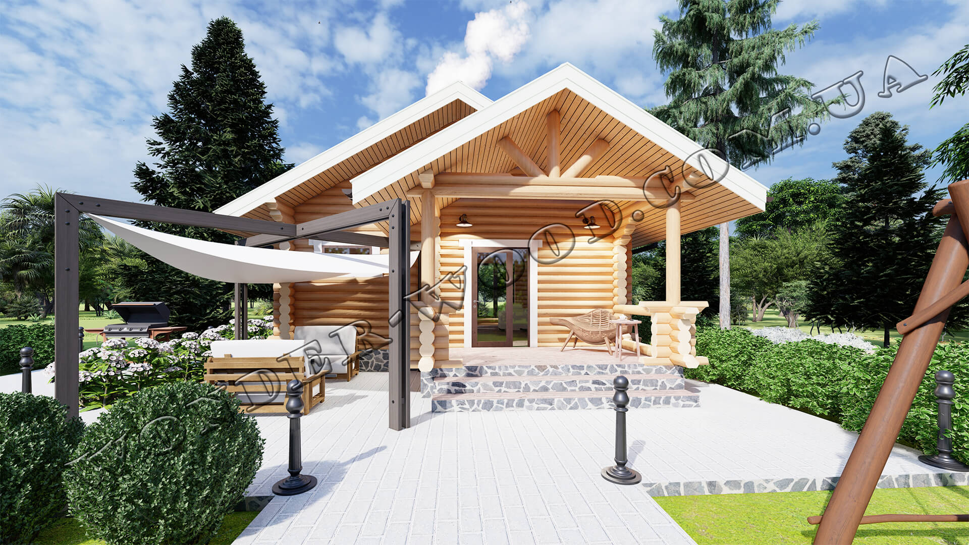 Будинки з брусу (https://wonder-wood.com.ua/ru/projects) оснащені спальними кімнатами, кухнею, санвузлом, вітальнею з якої є вихід на терасу, парною та душевою.